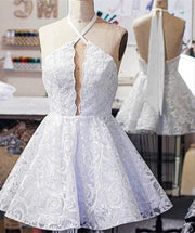 Halter Sleeveless Retract Your Waist Unique Lace Short Homecoming Dresses