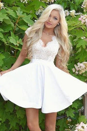Open Back Graduation Dress with Lace White Cap Sleeves Mini Homecoming Dresses