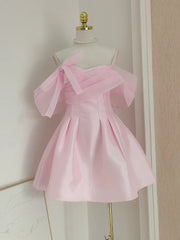 Pink A-line off-the-shoulder tulle satin short prom dress, Full of charm homecoming dress