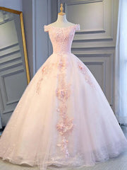 Pink Tulle Lace With Applique Off Shoulder Long Formal Dress Homecoming Dress