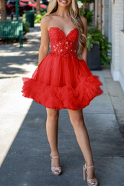 Pretty Red Tulle Beaded A-Line Sweetheart Neck Ruffle Homecoming Dress With Appliques - Red / US 2 / UK 6 / EU 32