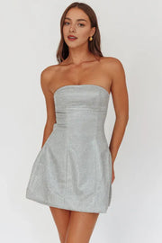 Pretty Strapless Sleeveless Bow Back Silver Mini Homecoming Dress