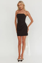 Pretty Strapless Sleeveless Oversized Bow Back Black Mini Homecoming Dress