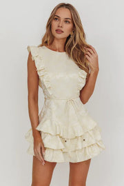 Round Neck Sleeveless Tie Ruffle Layered Jacquard Butter Homecoming Dress