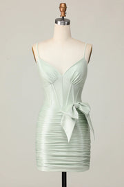 Sage Green Bodycon Corset V Neck Spaghetti Straps Homecoming Dress With Bow