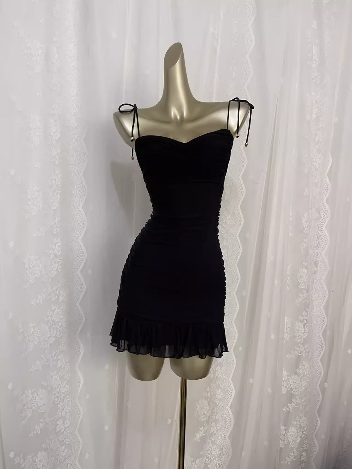 Sexy Sheath Straps Black Travel Vacation Dress Slim-fit Short Homecoming Dress