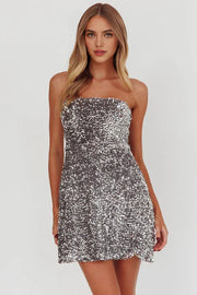 Shiny Strapless Sleeveless Sequin Silver Mini Homecoming Dress For Ladies - US 2 / UK 6 / EU 32