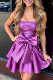 Simple design Purple A Line Bow Retract Your Waist Homecoming Dress