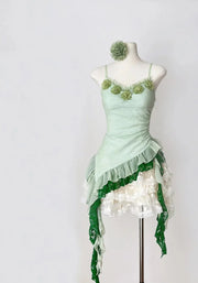 Spaghetti Straps Bodycon Lace Tulle Short Prom Dresses Fairytale Green Homecoming Dresses