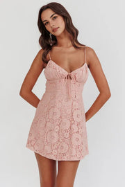 Spaghetti Straps Tie Bust Cutout Lace Overlay Pink Mini Homecoming Dress