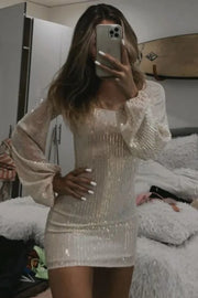 Sparkly Satin Sequins With Applique Scoop Sequin Long Sleeve Homecoming Dress