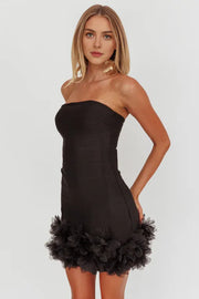 Strapless Bandage Applique Embellished Hem Black Mini Homecoming Dress