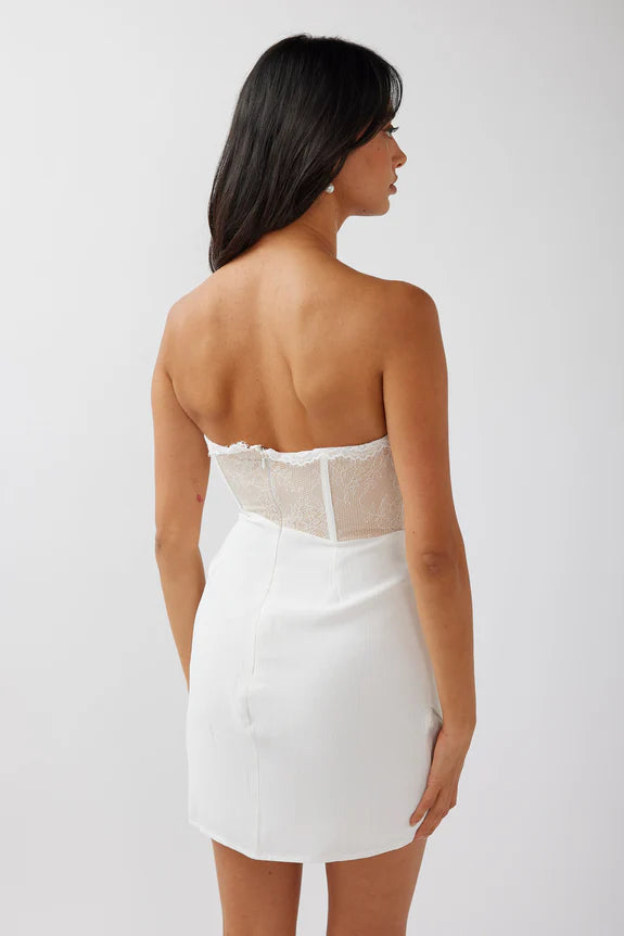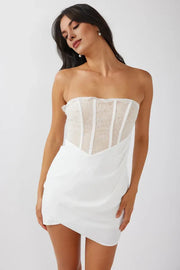 Make a bold statement with our Strapless Lace Bodice Bodycon Corset Black Mini Homecoming Dress, now hot on sale. It features a strapless design that showcases your shoulders, a delicate lace bodice with intricate detailing for a touch of romance, and a bodycon corset fit that hugs your curves beautifully. The mini length adds a playful and flirty vibe.