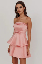 Strapless Tiered Ruffle Rose Pink Mini Homecoming Dress With Bow