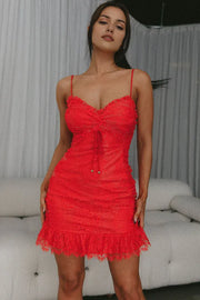 Stunning V Neck Cami Strap Frill Hem Lace Red Mini Homecoming Dress