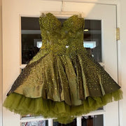 Sweetheart Neck A-Line Satin Tulle Short Prom Dresses Gorgeous Dark Olive Green Homecoming Dresses