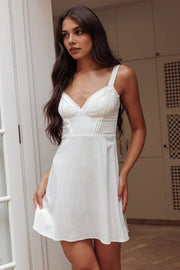 Sweetheart Neck Pintuck Pleat White Mini Homecoming Dress For Ladies is a charming and elegant choice. It features a sweetheart neckline that adds a touch of romance and allure, beautifully highlighting the collarbone and décolletage. The pintuck pleat detailing brings a sense of texture and sophistication, enhancing the dress's overall visual appeal. Crafted in a pure white hue, this mini dress is perfect for homecoming.