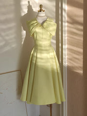 V neckline Satin Knee Length Homecoming Dresses Sexy A line Yellow Birthday Outfits
