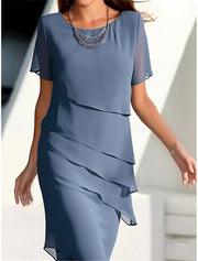 Blue Sleeveless Pure Color Ruffle Summer Spring Fall Crew Neck Fashion Dress