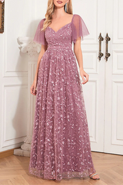This Dusty Rose mother of the bride dress features delicate floral lace appliques that enhance its elegant V-neckline and open back design. The A-line silhouette flatters a variety of body shapes, offering both comfort and sophistication for your special occasion. Crafted to combine timeless style with modern details, this dress ensures a graceful and memorable look.
