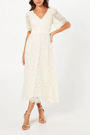 Lace Angel Sleeve Retract Your Waist Midi Mother Of The Bride Outfits Dress