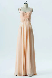 Light Orange Chiffon Sweetheart Halter Neckline Sleeveless Backless Bridesmaid Dress