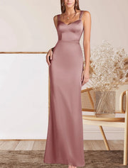 Mermaid / Trumpet Mother of the Bride Dress Wedding Guest Elegant Minimalist V Neck Floor Length Satin Sleeveless with Ruching 2025 - US 2 / UK 6 / EU 32