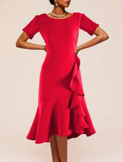 Plain Short Sleeve Crew NeckWomen's Midi Dress Prom Dress Party Dress Peplum Dresses