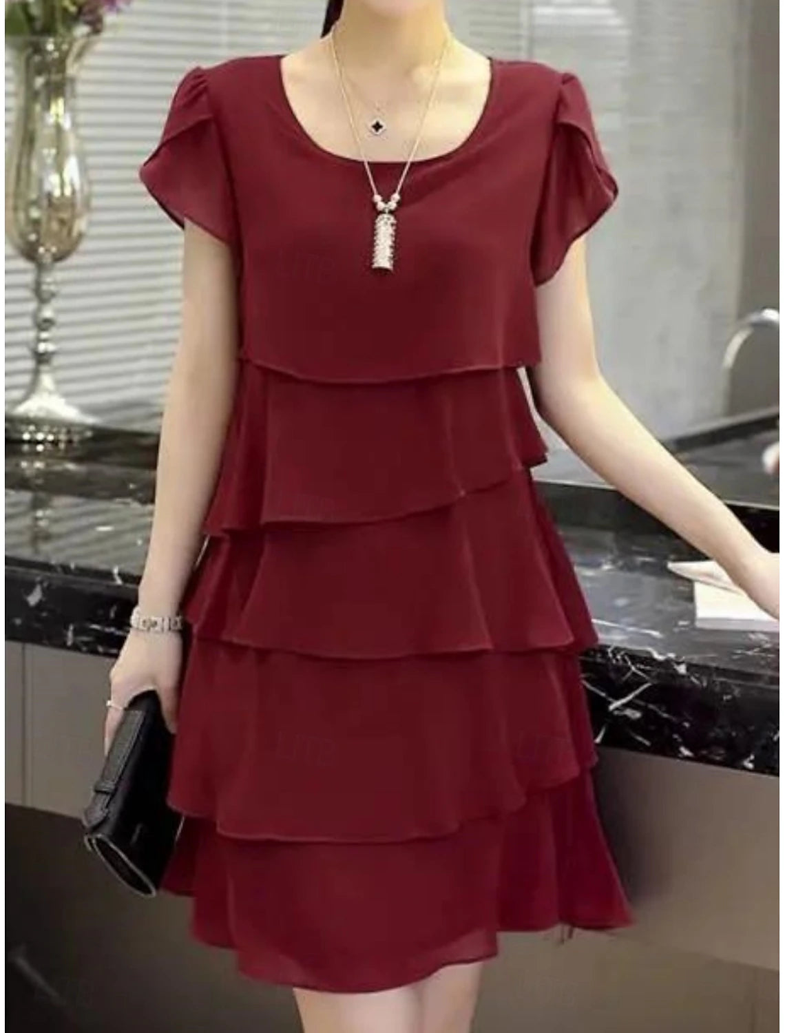 Regular Fit Graphic Short Sleeve Crew Neck Women's Mini Dress Work Dresses