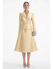Two Piece A-Line Champagne Dress Tuxedo Dress Elegant V Neck Tea Length Satin Long Sleeve with Solid Color Derby Dresses 2025 - US 2 / UK 6 / EU 32 / Champagne
