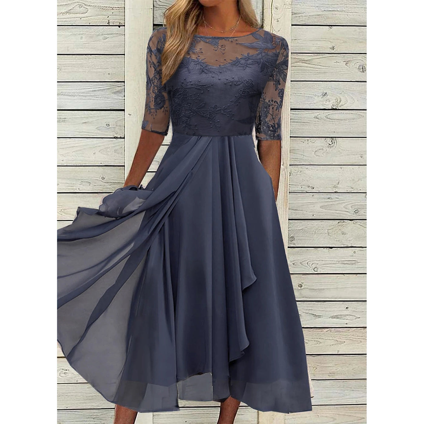 Women's Cocktail Party Dress Floral Embroidery Lace Dress Midi Dress