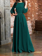 Women's Formal Long Sleeve Plain Ruched Lace up Fall Party Dress