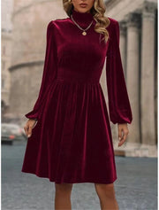 Women's Velvet Dress Mini Dress Ruched Casual Turtleneck Long Sleeve
