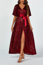 Wrap Style Sequin Maxi Mother Of The Bride Outfits Dress In Wine