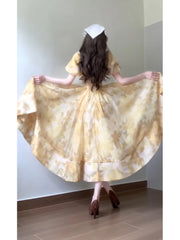 A line Square Neckline Yellow Holiday Dress Floral Birthday Dresses Sexy French Birthday Outfits
