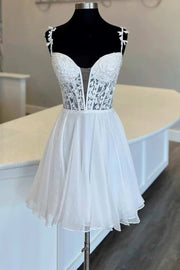A-Line White Sleeveless V-neckline Floral Appliques Plunging Neck Homecoming Dress