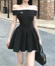 French unique design style black off-shoulder retract your waist party dress - US 2 / UK 6 / EU 32
