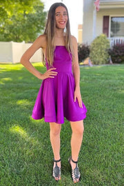 Purple Full of charm Straight Neckline Lace-Up A-Line Homecoming Dress