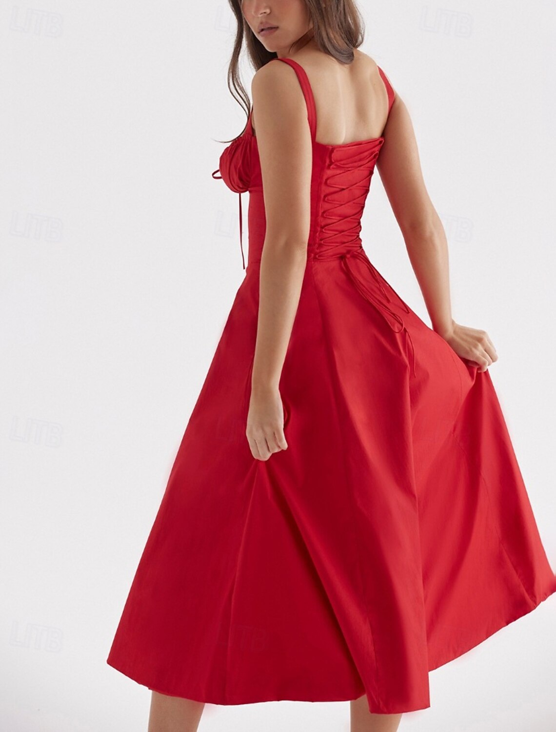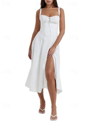 Regular Fit Plain Sleeveless U Neck Women's Midi Dress White Dress Graduation Dress
