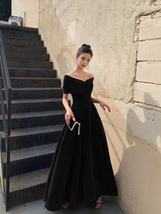 Simplicity Black Velvet V-Neck A-line Floor Length Prom Dress Evening Party Dress