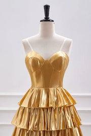 Strapless Retract Your Waist Metallic Elegance Off Shoulder A-Line Ruffle Homecoming Dress - US 2 / UK 6 / EU 32 / Gold