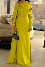 Women's customized Long Sleeve Party Dress Floor Length Saudi Occasion Gowns Elegant Yellow Prom Gown