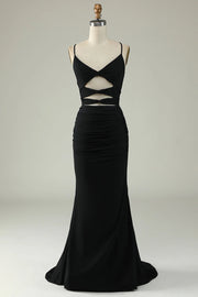 Mermaid Spaghetti Straps Black Plus Size Prom Dress With Keyhole