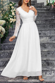 A-Line Long Sleeves V Neck Retract Your Waist Long White Dress