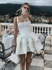 A Line White Short Party Dress Exquisite tailoring Satin Sleeveless Homecoming Dress