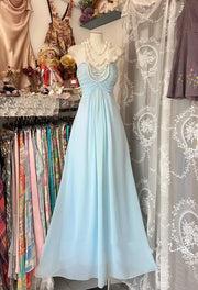 Baby Blue A Line Sweetheart Neck Beaded Chiffon Prom Dress