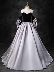 Black Velvet Sweetheart Neck Floor Length Formal Prom Dress off Shoulder Chic Party Dress With Detachable Sleeves
