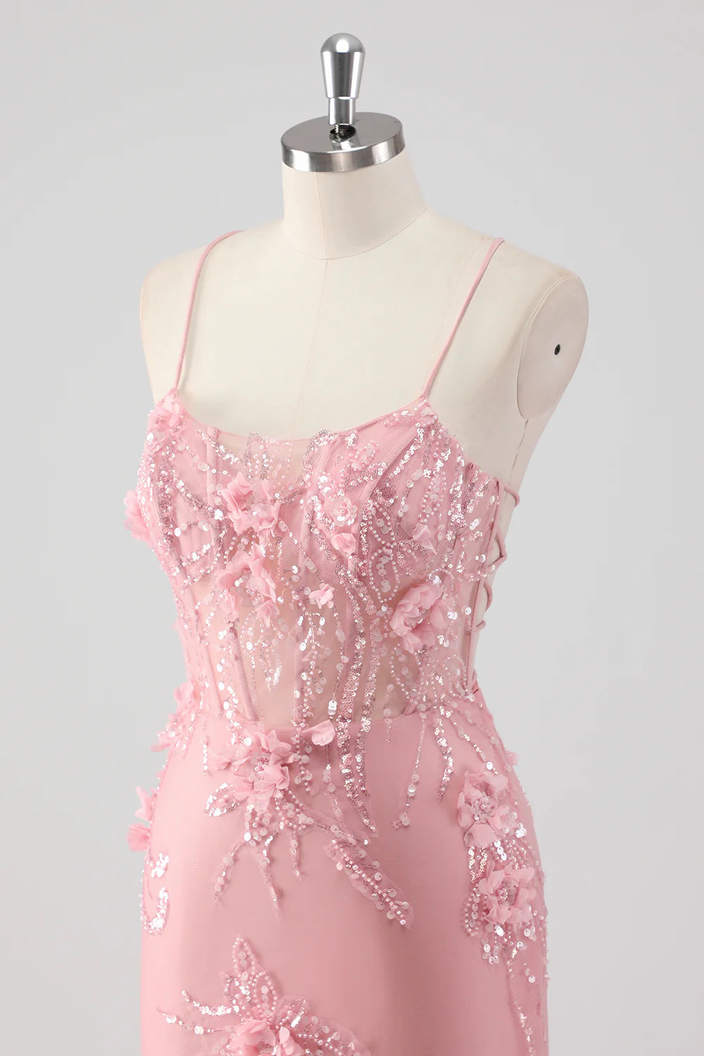 This sophisticated mermaid prom dress in a sparkling sage shade features intricately beaded spaghetti straps that enhance its elegant design. The long, form-fitting silhouette accentuates your figure, while the side slit provides both comfort and a subtle touch of allure. Ideal for formal events, this dress offers a perfect blend of timeless style and modern detail.