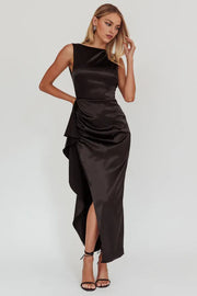 Casual Boat Neck Open Back Split Black Maxi Homecoming Dress is a striking choice for ladies. It boasts a classic boat neck that elegantly frames the neckline, giving off a timeless and refined vibe. The open-back design adds a dash of allure and sophistication, while the side split not only allows for easy movement but also brings a hint of sexiness.