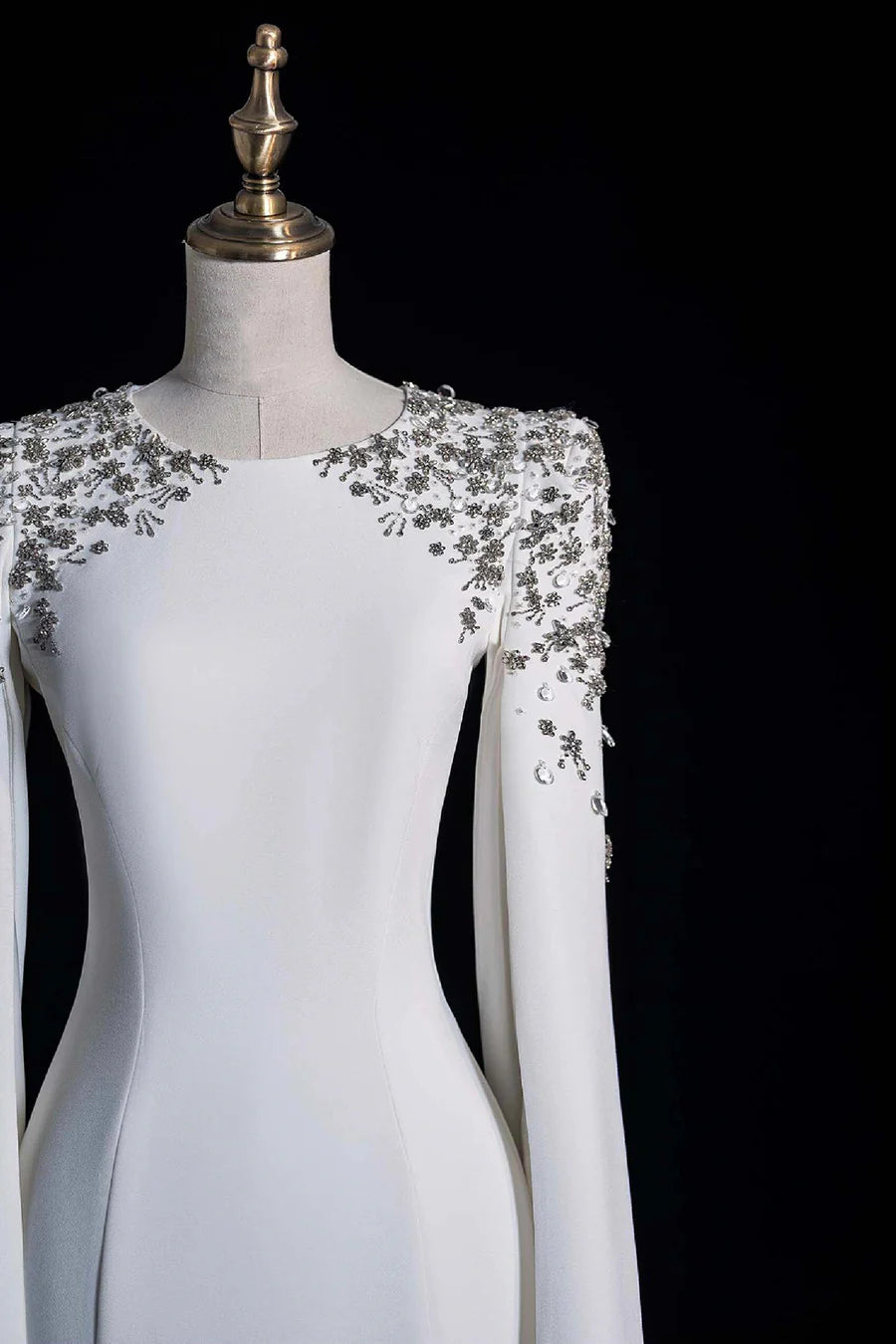 Chic White Scoop Neckline Beading Long Sleeve Long Prom Dress Party Dress - US 2 / UK 6 / EU 32